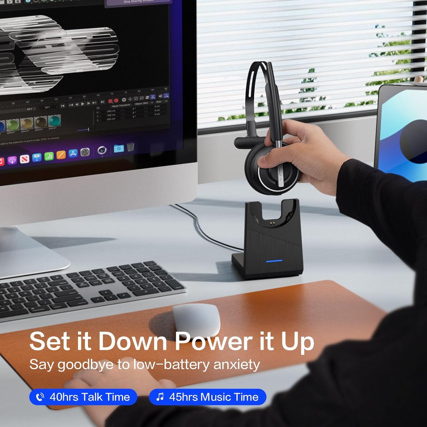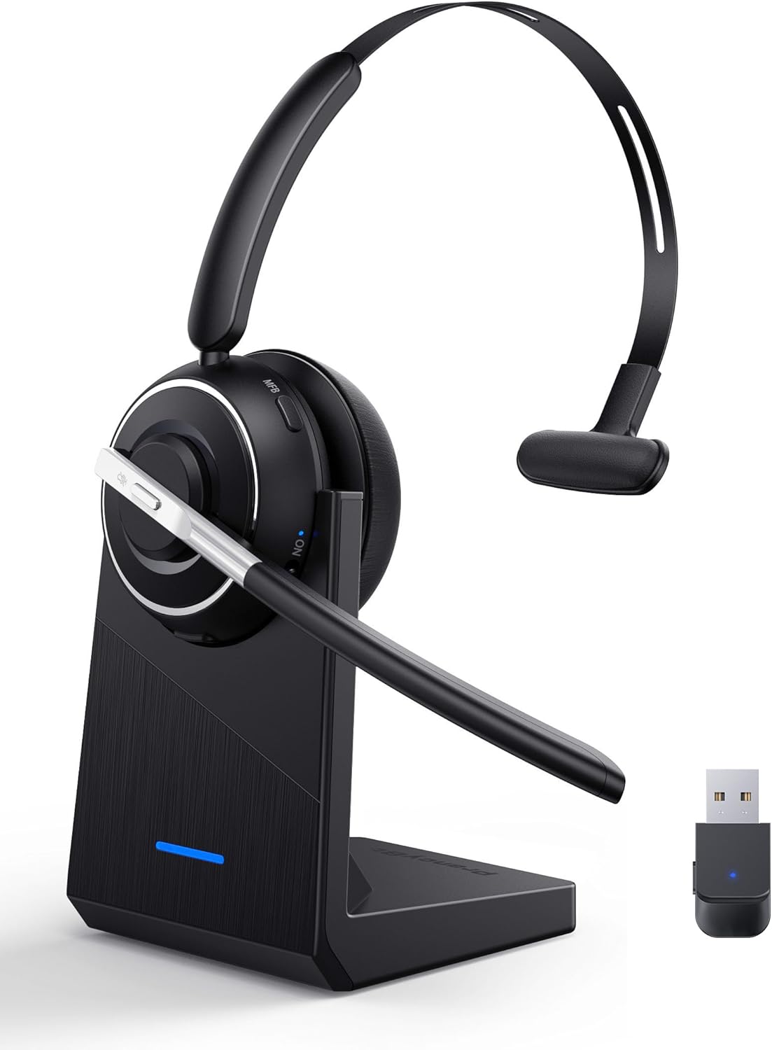 Professional Audio Anywhere. Better productivity: Whether you work at home or in the office or work from anywhere, wireless PC headset with microphone makes every call count. The 270°rotatable microphone process voice and environmental sounds separately, reducing unwanted distractions and accurately capture human voices so that each word during a phone call is crisp and clear. Perfect for hybrid workers to get instant concentration, seamless collaboration and get the most out of the workday