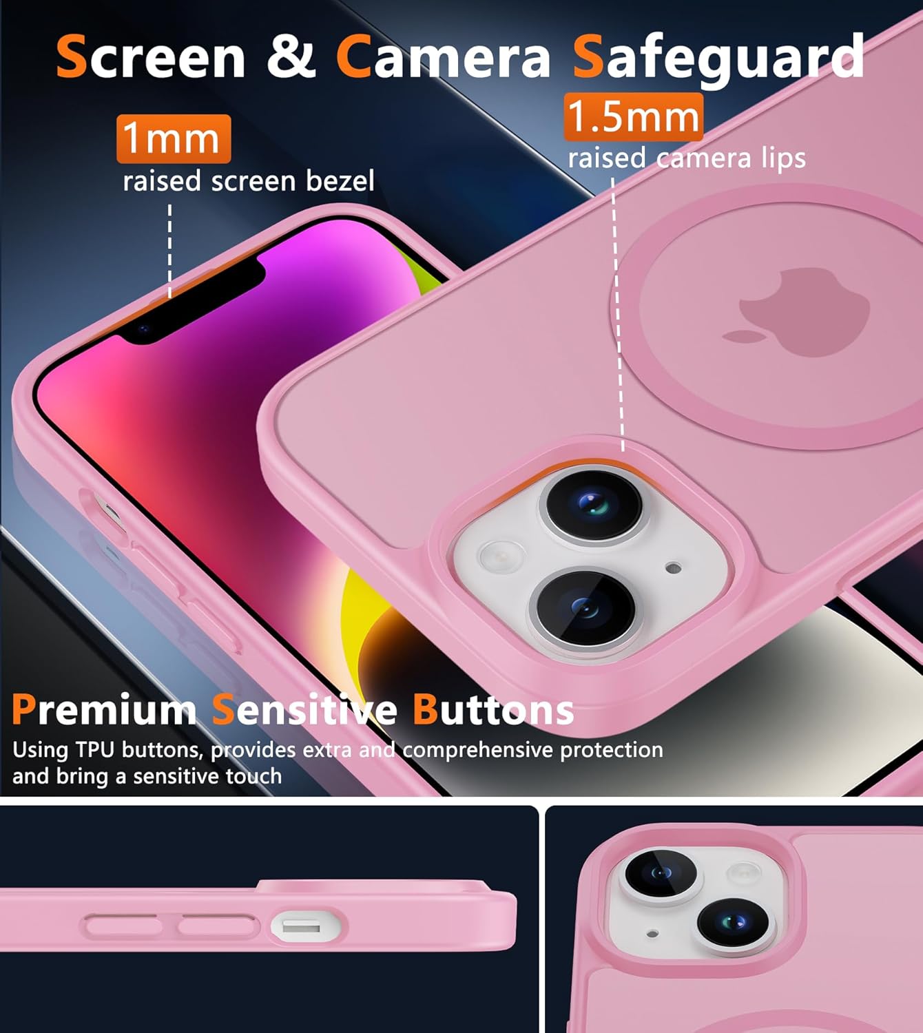 Translucent Matte & Anti Fingerprint Back : The iPhone 13/14 case uses high-grade matte TPU and PC translucent material, refined and elegant beauty without obscuring the logo. The frosted surface provides you with a comfortable hand feel and the nano-antioxidant layer can effectively prevent stains,scratches,fingerprint