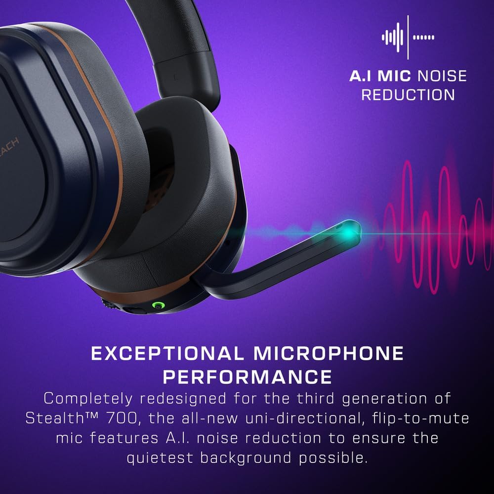 Completely redesigned for the third generation of Stealth 700, the all-new uni-directional, flip-to-mute microphone features A.I. noise reduction to ensure the quietest background possible. Plus, using the Swarm II app for desktop & mobile, you can further refine microphone specs to dial-in your exact preferences.